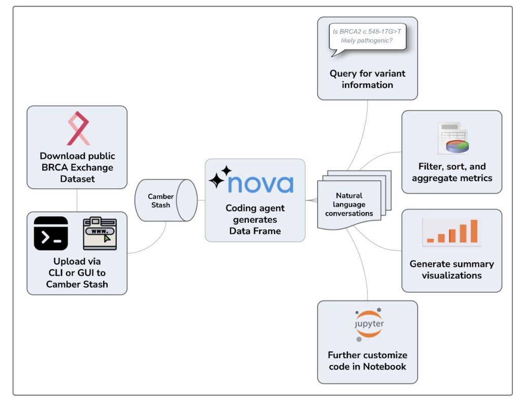By integrating BRCA Exchange variant data with GA4GH standards, this GA4GH Implementation Forum (GIF) project creates open, platform-agnostic workflows and tools that can be used by anyone for scalable variant annotation, machine learning, and seamless data exchange. Camber — a cloud-native platform that provides intuitive, low or no-code “science engines” for running simulations, analysing large datasets, and Artificial Intelligence training — serves as the lead implementation showcasing these capabilities.